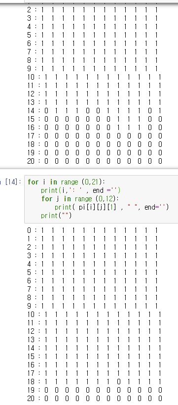x 축은 내 카드합(0~20) y 축은 딜러 카드의 숫자이다.