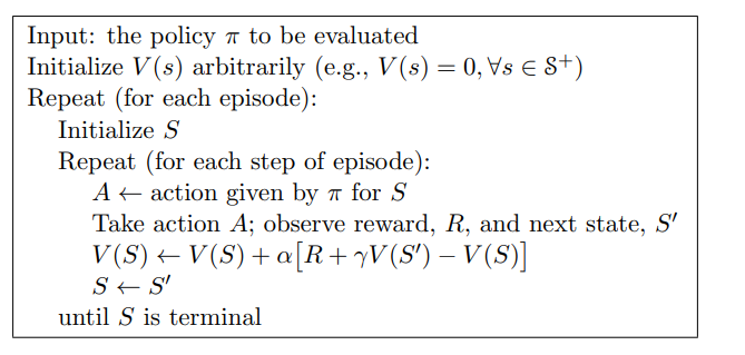 V(st) 를 업데이트한다. 이방법을 TD(0) 이라하며 one step TD 라고한다.