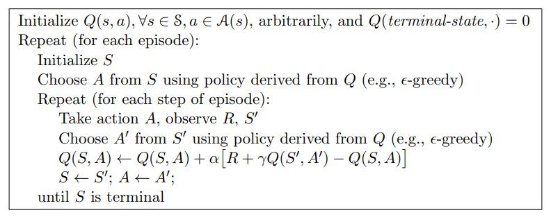 Td ,off-policy method 를 Q-learning 이라고한다. 의사코드로 비교해보자