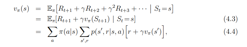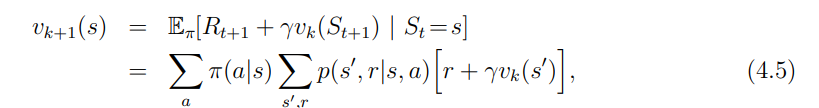 이 책에서는 아래와 같이 v 를 반복적으로 iterate 시키면, 위의 V_pi 로 수렴한다고한다. (왜죠??)