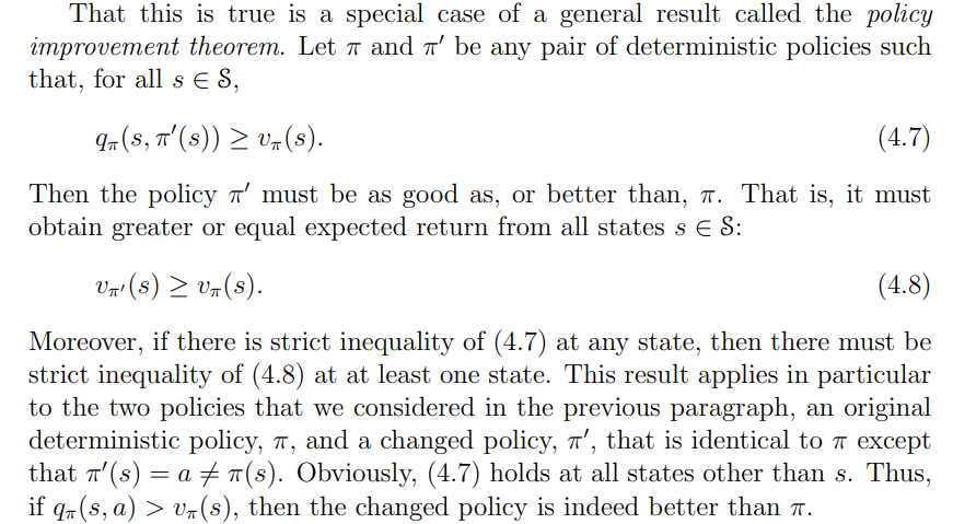 그외에 pi ' 는 p 랑 동일하다고 생각하면, 정책 pi 는 s> s' 가는구간에 대해서 4.7 을 만족하면 새로운 정책으로 변하게 된다.